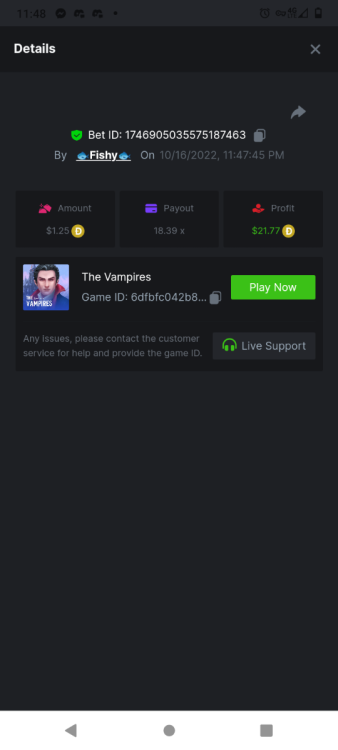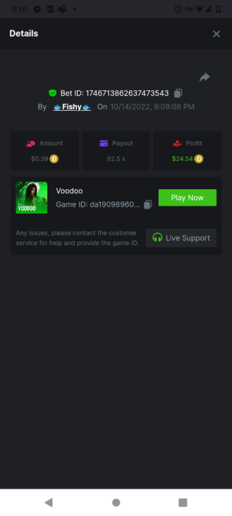 Voodoo: 62.5x Bet ID: 1746713862637473543 Hell Hot 100: 18.8x Bet ID: 1746712591668479104 100 zombies: 16x Bet ID: 1746714484686114567 Dia de Los muertos: 160x Bet ID: 1746903881181296391 Cyber Wolf: 100x BET iD: 1746904418254801024 The Vampires: 18.39x BET ID : 1746905035575187463 Hell Hit 20: 40x BET ID: 1746906362450280455 -